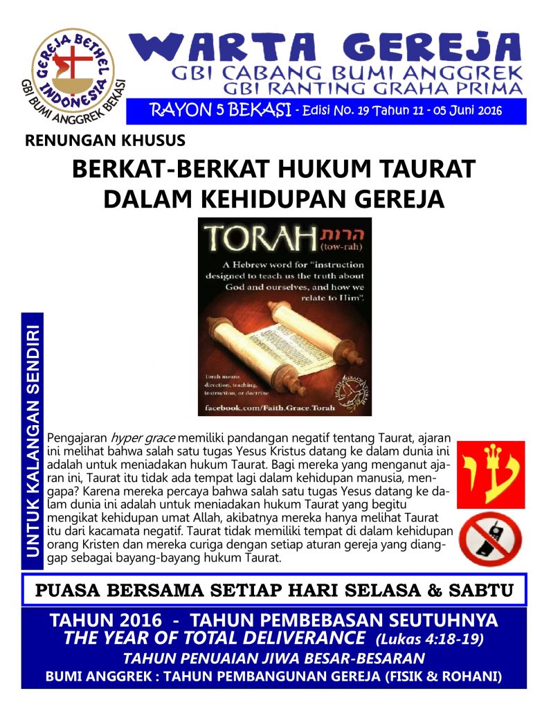 RENUNGAN KHUSUS BERKAT-BERKAT HUKUM TAURAT DALAM KEHIDUPAN GEREJA Pengajaran hyper grace memiliki pandangan negatif tentang Taurat, ajaran ini melihat bahwa salah satu tugas Yesus Kristus datang ke dalam dunia ini adalah untuk meniadakan hukum Taurat. Bagi mereka yang menganut ajaran ini, Taurat itu tidak ada tempat lagi dalam kehidupan manusia, mengapa? Karena mereka percaya bahwa […]